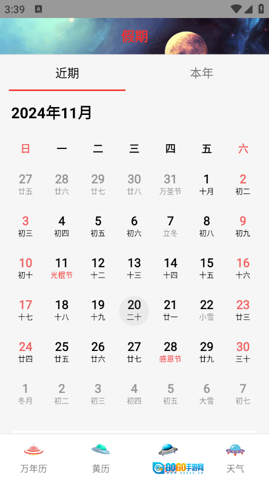 一般手机都自带日历工具,不过功能往往不够全面。用户可以通过黄历日历查看各类日历信息,包括良辰吉日、天气情况以及全年的节日假期安排,还能设置个性化的日历页面,打造独特的浏览体验。这款应用体积小巧,所有日历相关信息都清晰直观,一目了然。