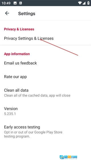 3、在设置页面中找到并点击【Privacy-Settings-&-Licenses】选项,即可进入隐私与许可相关的设置界面。
