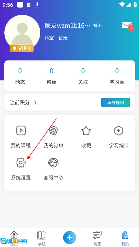 1、先切换至软件主页底部的“我的”界面,接着点击系统设置选项。