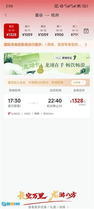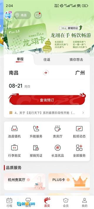1、打开长龙航空App,选择目的地点击查询预订