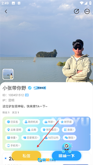 在“驴友”板块,挑选目标用户,再进入该用户的个人主页。