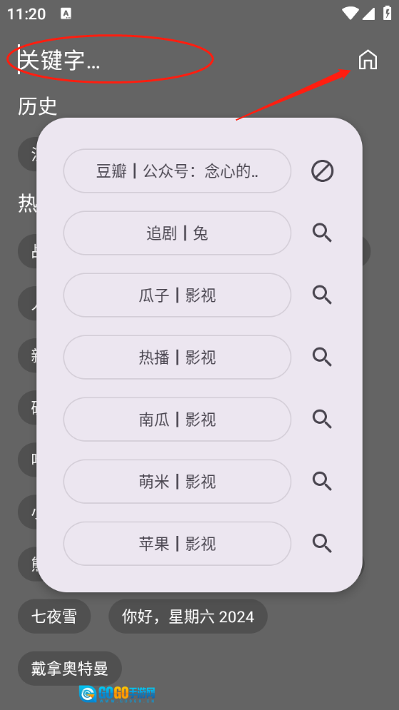 用户可借助关键词开展精准搜索,点击右上角箭头处即可切换搜索线路。