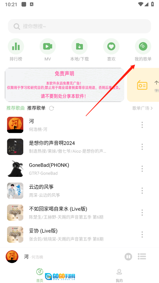 打开软件后,在首页选择歌曲或者是搜索歌曲。