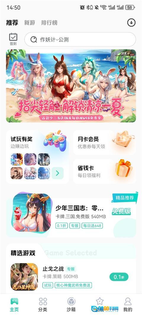 登录成功后进入应用首页,能浏览推荐、精选、排行等不同分类的游戏资源,也可以直接搜索想要找的目标游戏。