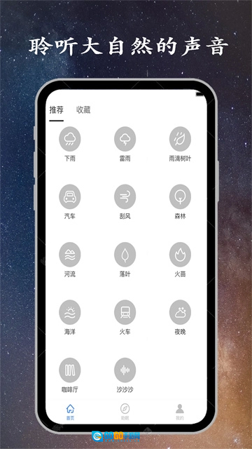 2、*本App14款基础白噪音,涵盖虫鸣鸟叫、雨声、海声、风声、流水声、雷声、燃烧声、环境声等多种类型,您可根据喜好自由组合出心仪的声音。