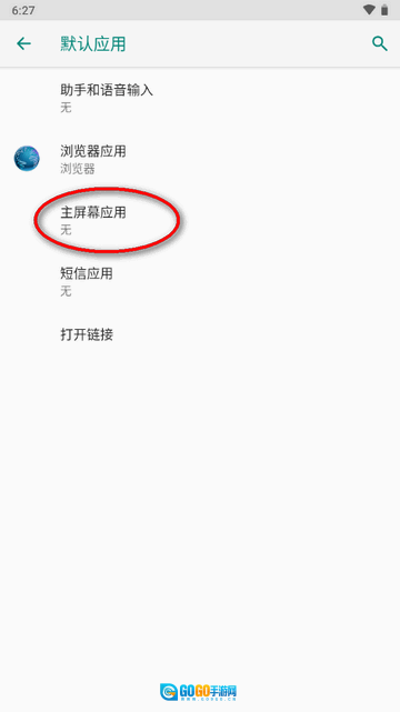 来到默认应用页面,选择主屏幕应用。