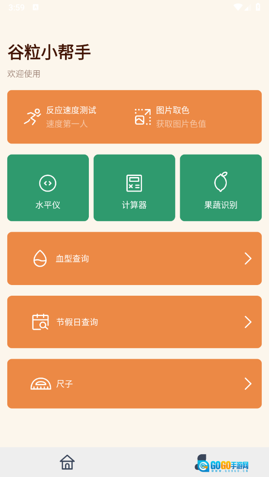 多功能整合:集合了反应速度测试、颜色提取器、水平仪、日期计算器、果蔬识别、血型查询、节日查看、尺子等各类实用功能,基本覆盖了日常生活里可能用到的各类小工具。