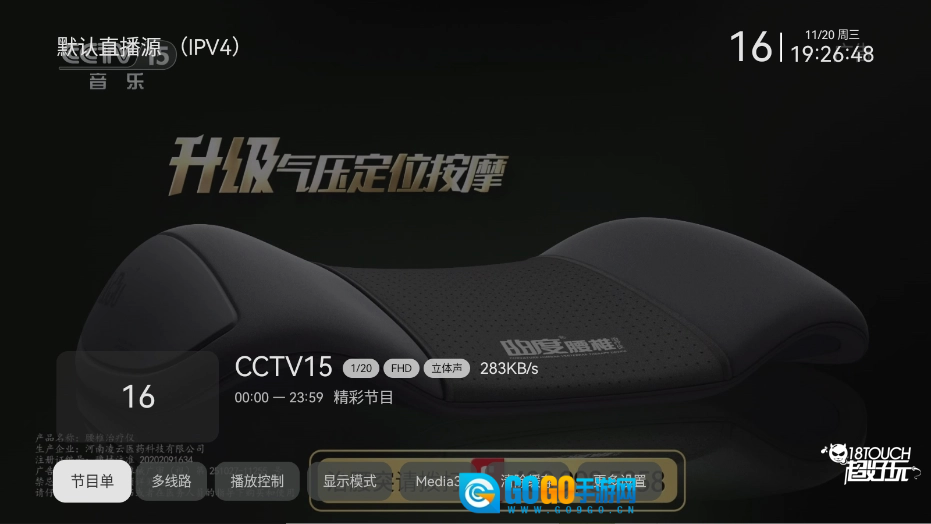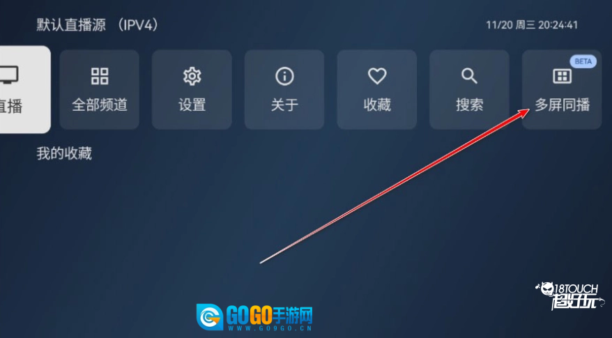 1.启动小飞电视后,可通过双击屏幕或按下遥控器的菜单键来调出菜单界面