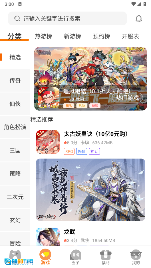 打开软件后,“首页”和“游戏”板块里聚集了海量游戏资源,玄幻、传奇、三国等各类题材应有尽有。