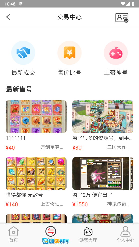 这是一个提供账号自由交易功能的娱乐工具,支持小号的出售与回收服务,同时也提供角色购买渠道。