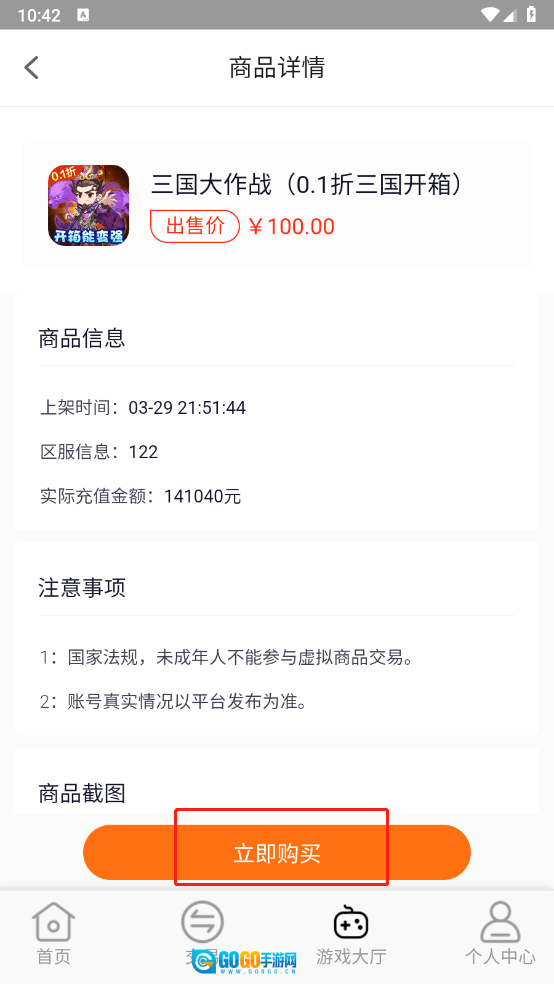 选择满意的游戏账号之后,点击“立即购买”即可。