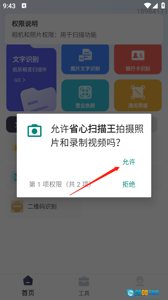 安装好省心扫描王软件,同意相关政策与协议。