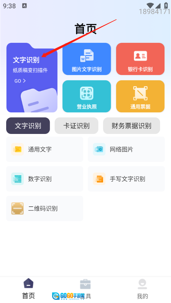 进入首页,点击“文字扫描”。