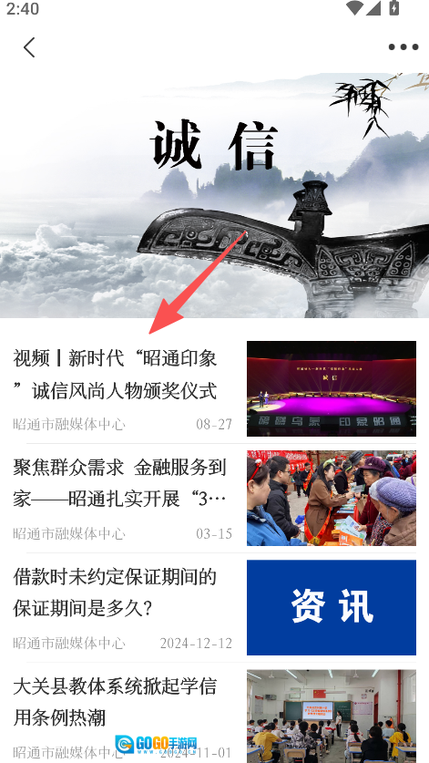 打开软件点击昭通印象选项,进入对应内容页面。
