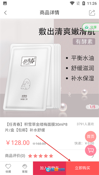 在【任青春】积雪草金缕梅面膜的详情页面,您可以点击【加入购物车】按钮将商品暂时保存,也可以选择点击【立即购买】按钮直接完成下单操作。