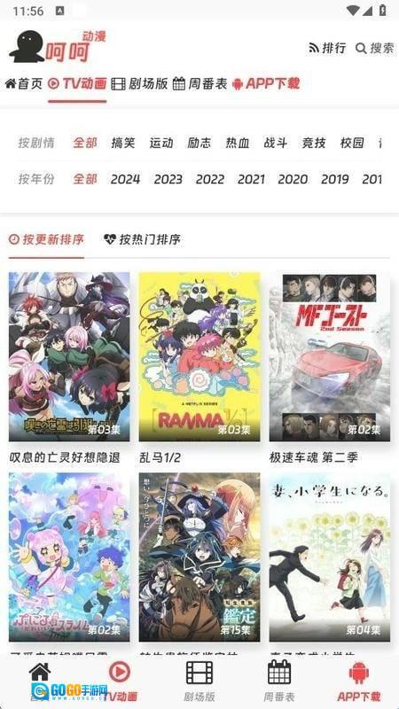 TV动画界面涵盖了冒险、奇幻、科幻、浪漫、悬疑等多种题材的动漫作品。