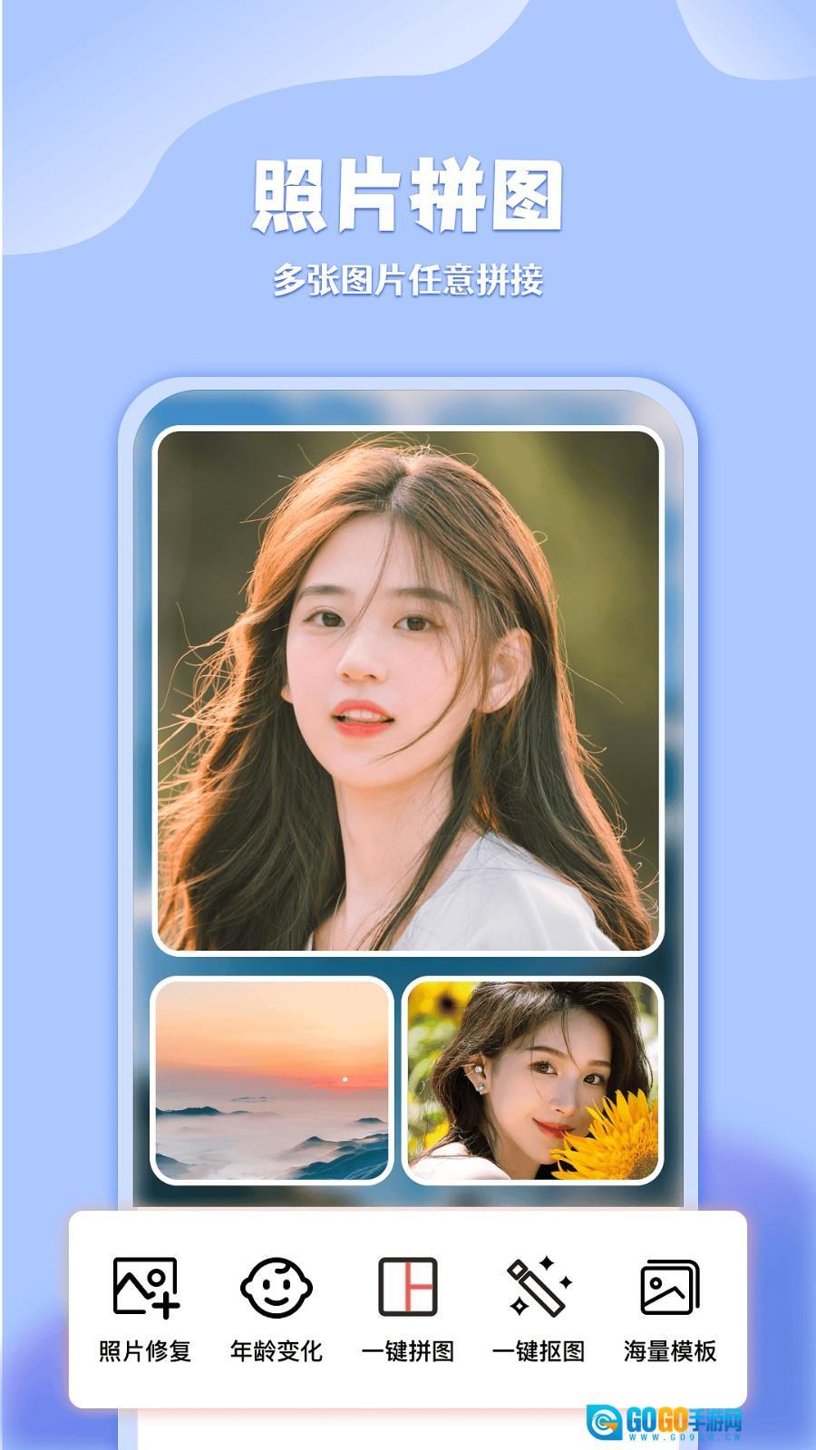 上百种图形可供随机挑选,图片修复功能十分强大,拼接修图功能也很完善。