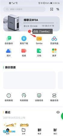 打开绿联云,在首页界面,点击【Samba】选项。