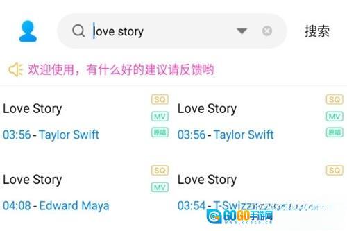 可以进行歌词或者关键字以及歌手等进行一键搜索;