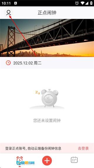 在正点闹钟的首页,点击左上角的个人图标,就能进入我的页面。
