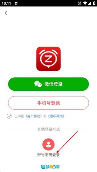 在登录方式选择页面,点击“账号密码登录”选项,即可进入对应的账号密码登录界面。