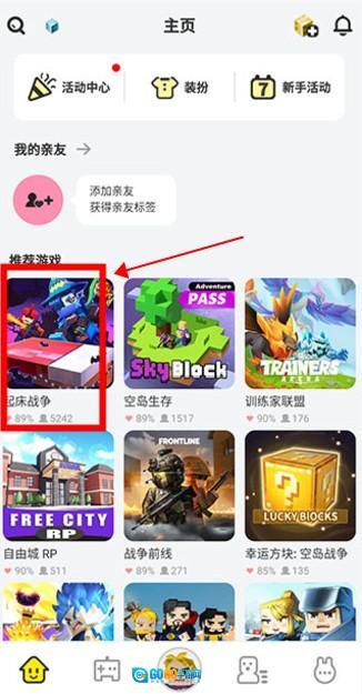 在主界面下方的推荐游戏列表里,找到你想玩的那款游戏。比如,以“起床战争”为例,点击它就能进入游戏。