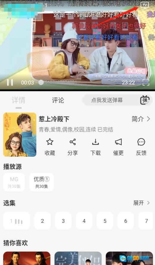 用户点击想看的影片进入播放页面后,再点击右上角的“TV”按钮。