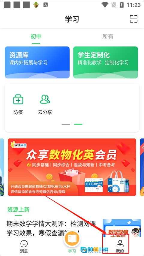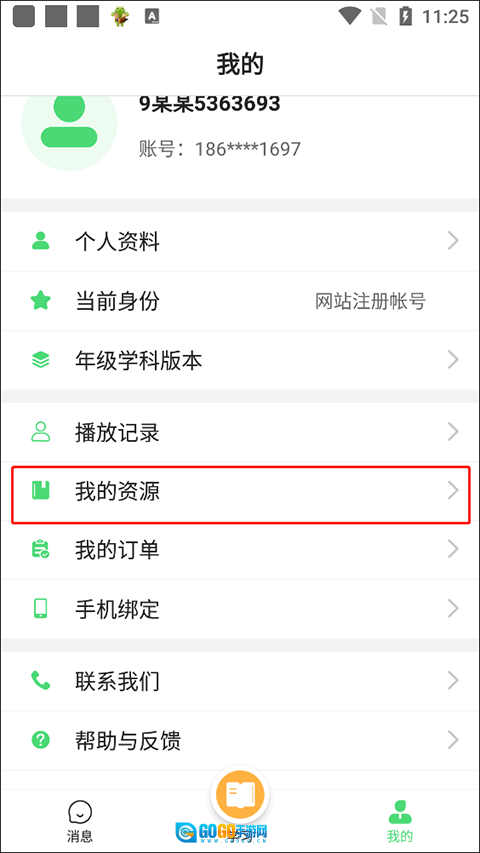 点击如图所示位置的【我的资源】功能。