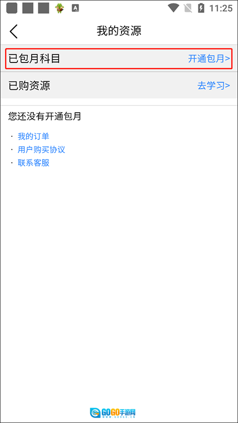 在我的资源页面,点击【已包月科目】选项就能开通包月服务。