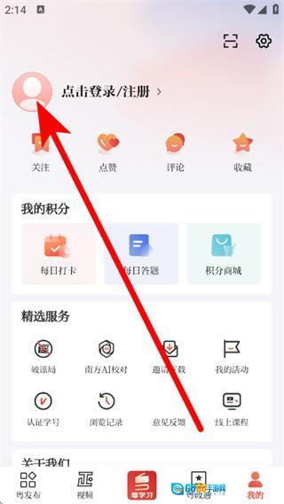 打开粤学习,点击底部我的,进入我的页面。
