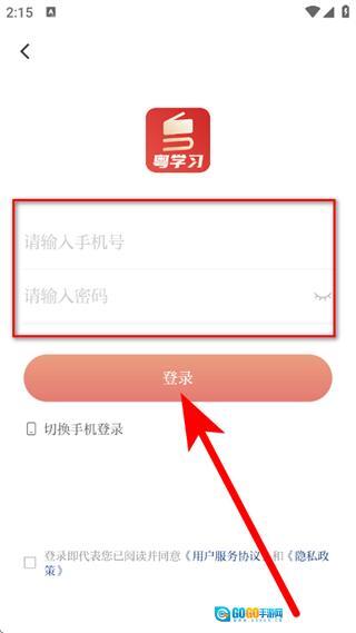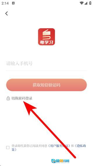 在登录页面,点击切换密码登录,输入手机号。