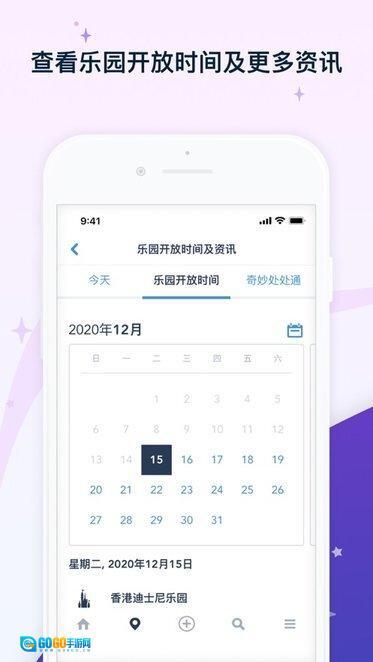 查看游乐设施预计等候时间及巡游.娱乐演出时间表等