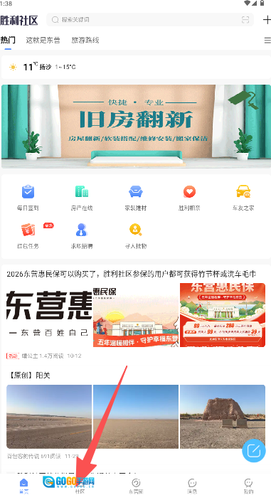 打开浏览首页点击底部“社区”功能入口。