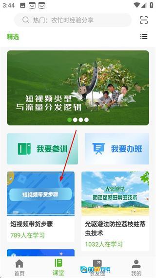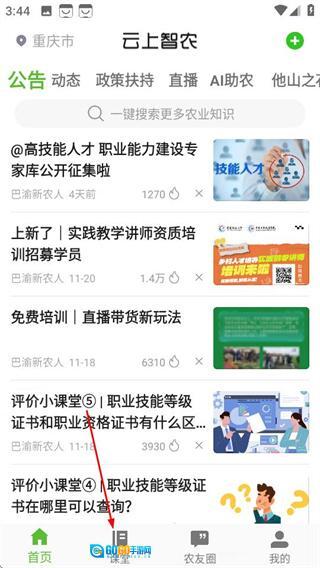 在渝农云的首页,点击底部的“课堂”选项,即可进入课程页面。