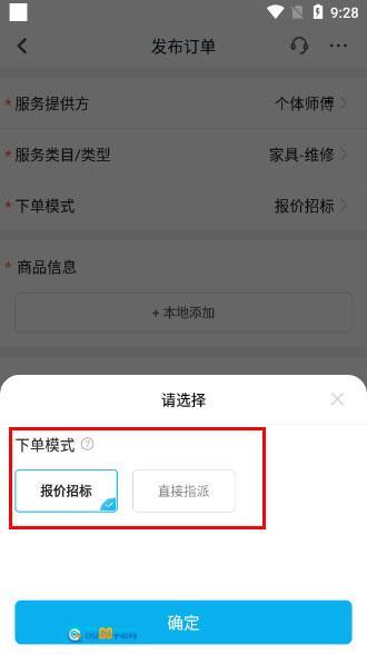 选择下单方式时,你可以通过报价寻找合适的服务,也可以自行指定师傅上门提供服务,还能让平台直接安排派送。