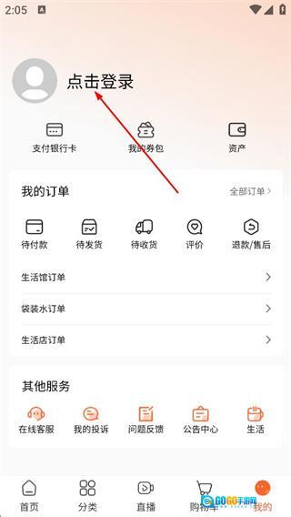 之后我们可以在我的页面,点击登录按钮,进入登录页面。