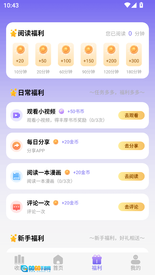 每日福利,日常福利,根据观看时长送观看金币。