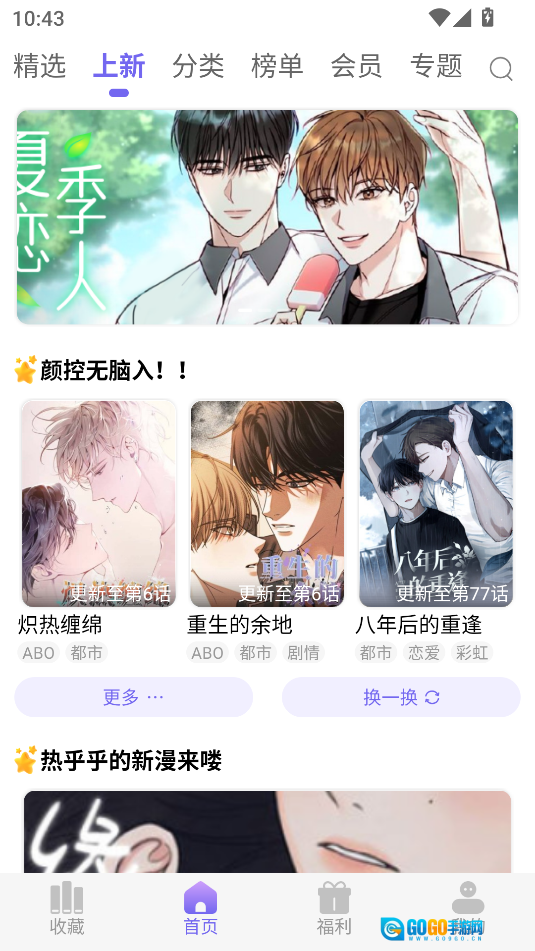 耽漫神器绝对是耽美漫画爱好者的专属乐园。这里云集了海量热门精品,覆盖日漫、韩漫等多种类型,无论是热血、校园,还是奇幻题材,都能全部囊括。软件每天实时更新连载内容,让你追漫不间断。更配备智能推荐系统,精准推送符合你喜好的漫画。界面清爽,支持离线阅读,还有互动社区可以分享感受,带你尽情享受沉浸式的追漫乐趣。