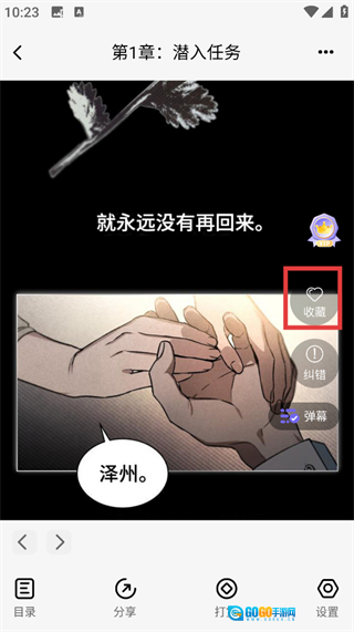 在阅读页面,你可以点击【收藏】按钮来保存作品,也能开启【弹幕】功能参与互动了。