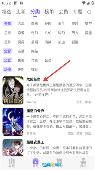 在分类页面,挑选对应的分类选项,就能找到你想浏览的作品,比如《危险任务》这类。