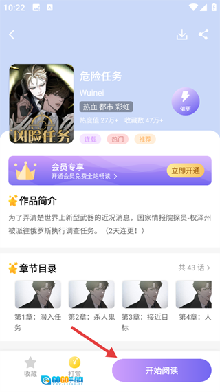 进入【危险任务】的作品详情页面后,点击【开始阅读】按钮,就能进入到内容页面啦。