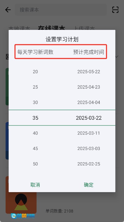 设置好每天学习的新次数或预计完成的时间。