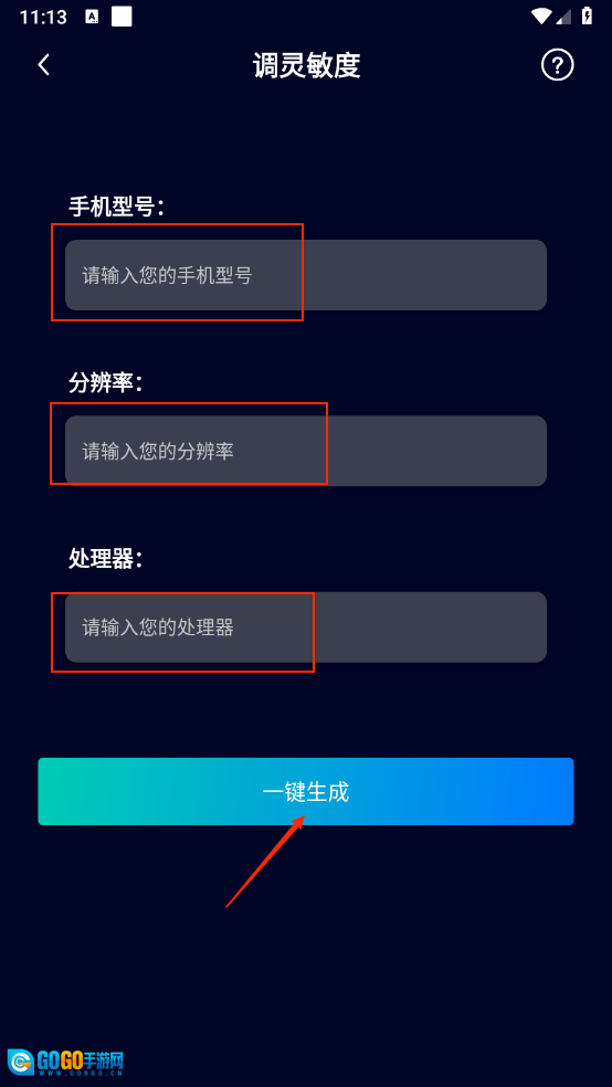 最后输入手机型号、分辨率、处理器,点击“一键生成”按钮就可以了。