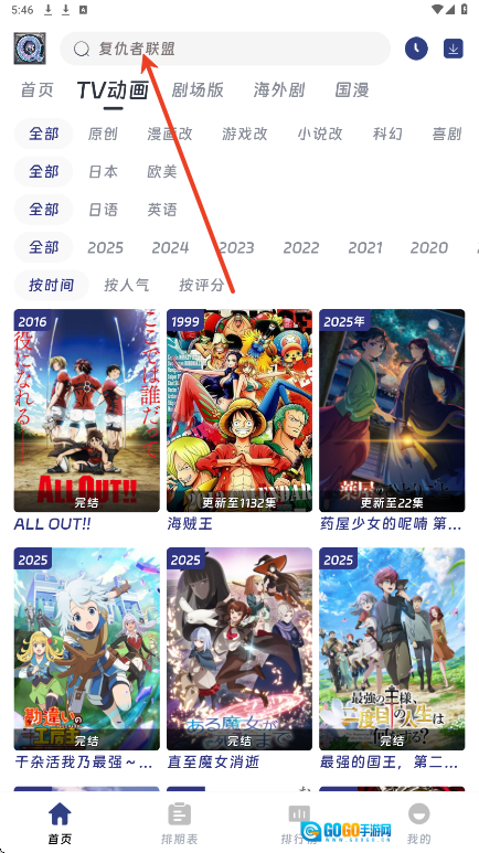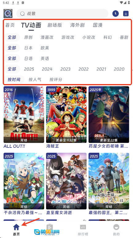 如图所示,在主页切换到“TV动画”板块后,就能筛选自己喜欢的动漫了。