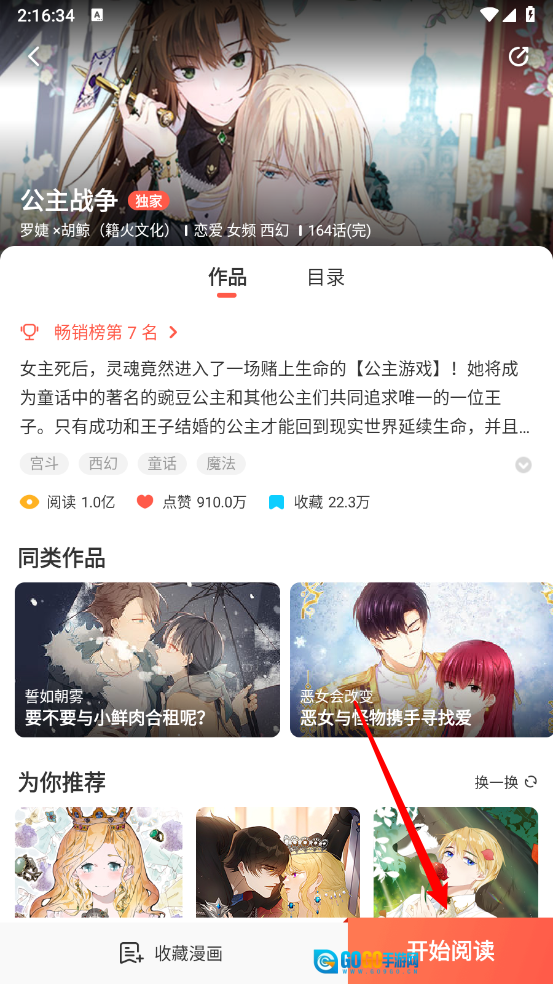然后打开需要阅读的漫画,进入后在漫画详情页点击“开始阅读”按钮。