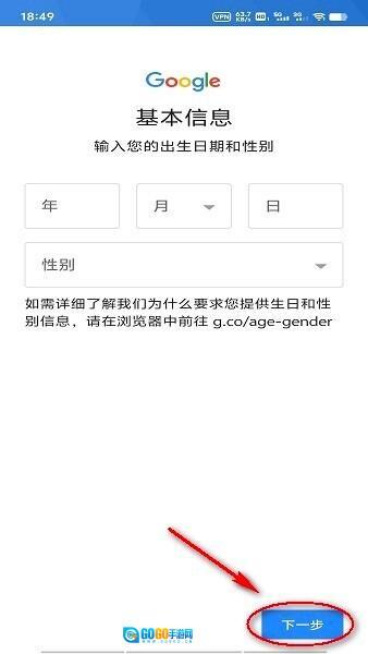 如图所示,点击填写相关信息后,点击"下一步"。