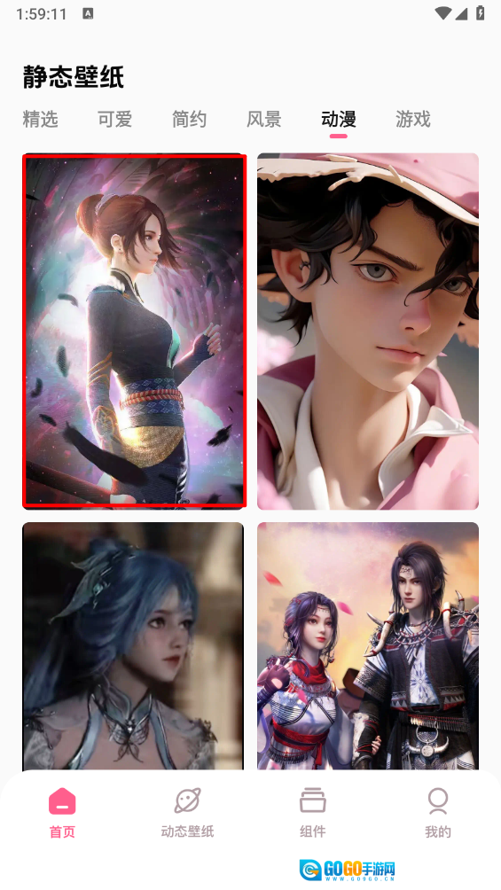 比如切换至动漫壁纸板块,选择喜欢的壁纸。