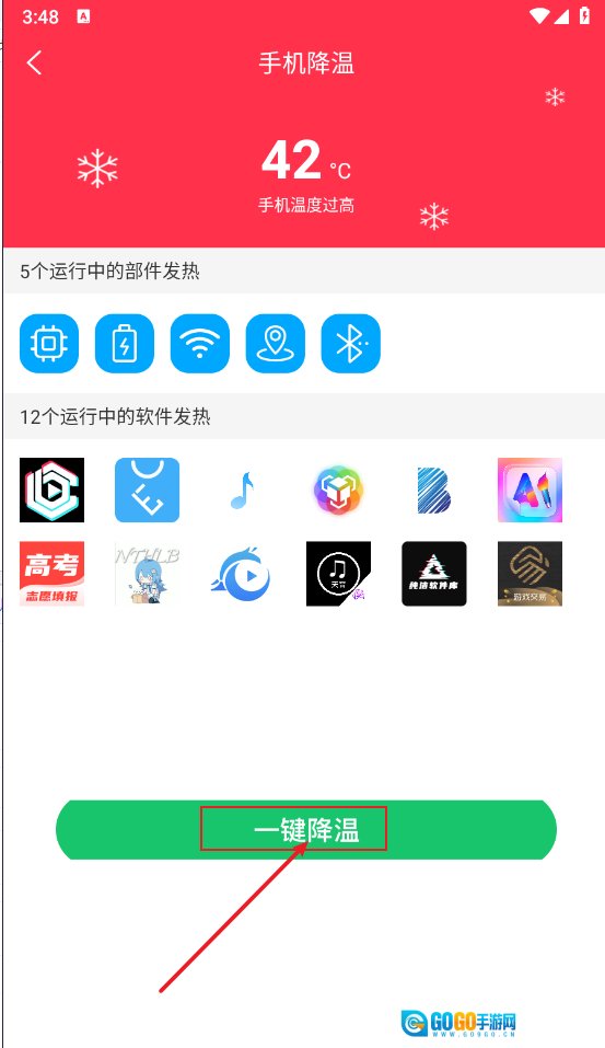 同时还可以对手机进行"一键降温"。