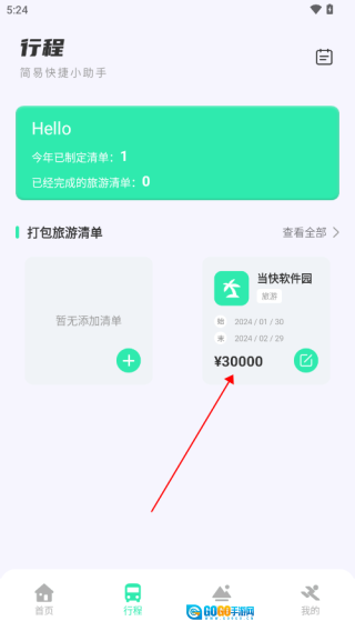 进入妙游记首页,找到行程板块
