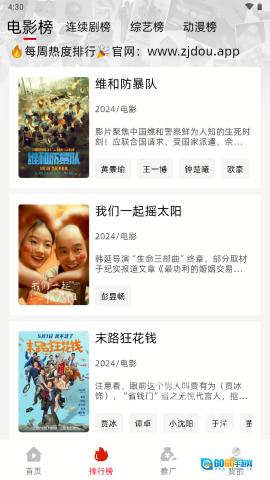 继续切换到【排行榜】页面,这里每天都会整理出几部热度较高的影片,你可以随时点击观看。